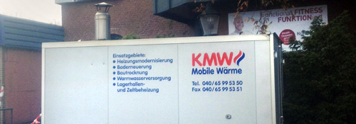 mobile Heizzentrale von KMW-Mobile Wärme für Wellness Von: Andreas Kramp Am: 03.03.2013 Überbrückung der Warmwasserbereitung bei einem Kesseltausch, durch eine Mobile Heizzentrale von Fa. KMWWeiterlesen … mobile Heizzentrale von KMW-Mobile Wärme für Wellness