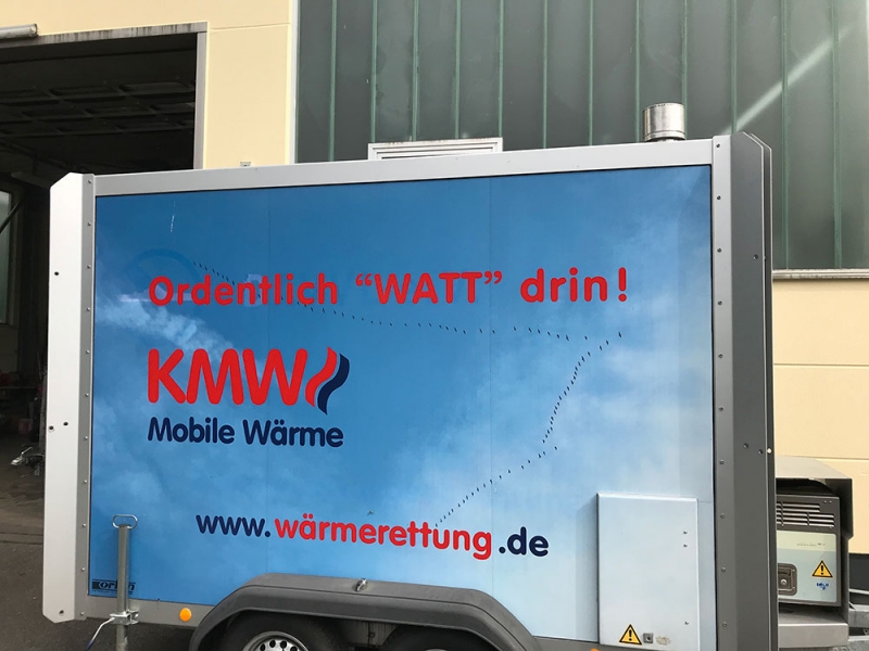 Das neue Heizmobil „MWAutak„ mit eigener Stromversorgung mittels Generator Technik 5,5 KW Strom und 75 KW Heizung